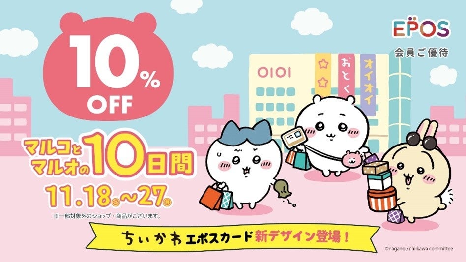 「ちいかわ」とコラボレーション!エポスカードで10%OFF!マルイ・モディ全店、マルイのネット通販にて『マルコとマルオの10日間』開催!
