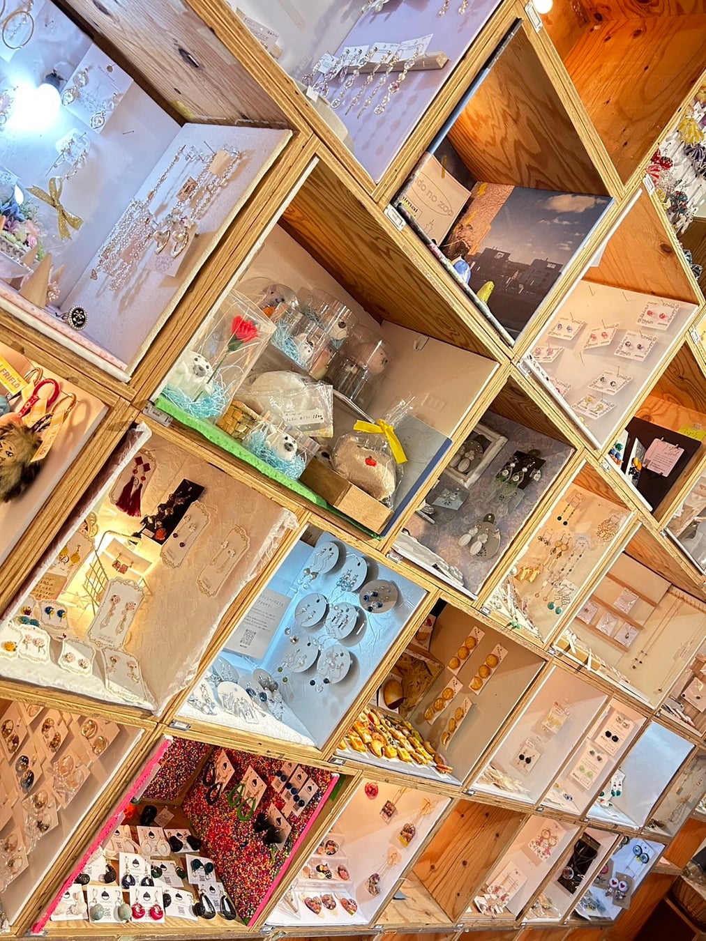 作家さまの「個性」「想い」「こだわり」などの世界観が演出できるよう、各作家さまごとの作品を一つ1つの箱スペースにて展開。約1万点の商品が、さまざまな世界観に彩られたすてきな空間な中で並んでおり、宝探し気分でお買物をお楽しみいただけます!