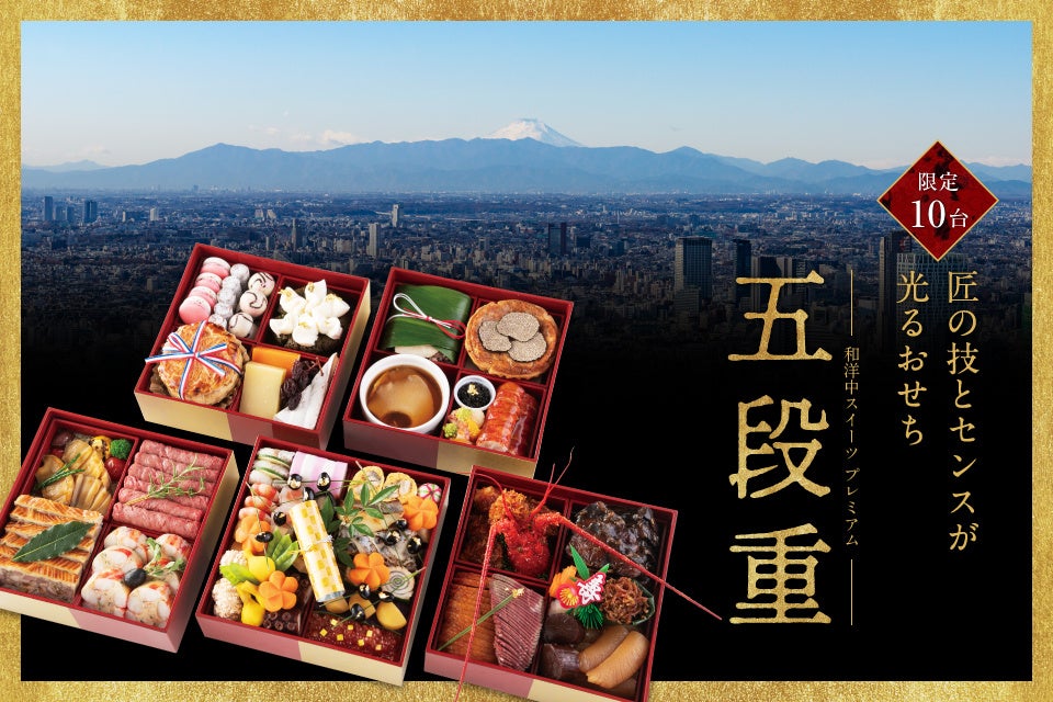 匠の技とセンスが光るおせち「和洋中スイーツ プレミアム五段重」