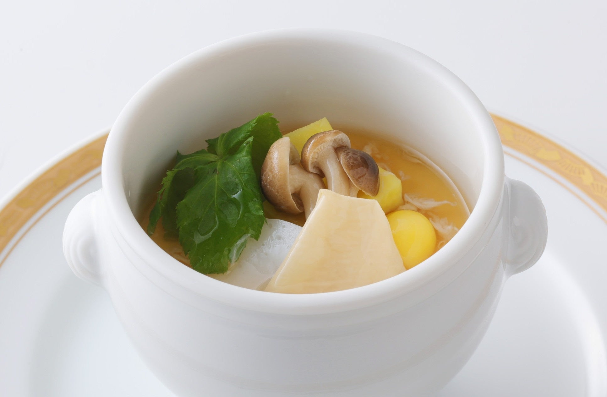 あたたかく洒脱な語りで親しまれる「立川晴の輔」の一皿は、秋の収穫を詰め込んだ洋風茶碗蒸し。やさしい野菜コンソメに絹のように揺らめく湯葉を浮かべた銀餡が素材の味を引き立てる、心までほぐれるような味わいが魅力です。
