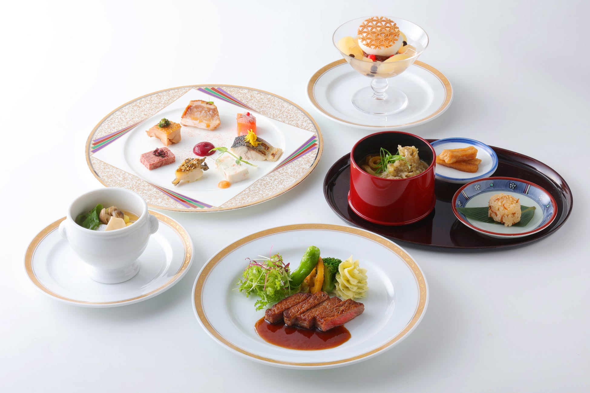 ホテルニューオータニ幕張 総料理長 小出裕之が、それぞれ異なる魅力を持つ3人の噺家を、一皿一皿で表現。和と洋の味わいを巧みに織り交ぜ、ユニークで、どこか温かい、まさに“語れる料理”に仕上げました。