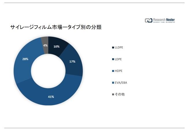 家畜の増加に伴い、動物性食品の需要の高まる-たとえば、米国だけでも 55百を超える施設で、毎年 250百万トン近くの動物性食品が生産されると予測されています。サイレージフィルムは、干し草やトウモロコシが長期間腐敗するのを防ぐために一般的に使用されています. 牧草や作物などの動物性食品は、丸または四角いベールに集められ、これらのベールはサイレージフィルムで覆われています。サイレージフィルムは、極端な気象条件から干し草を守るのに非常に役立ちます。