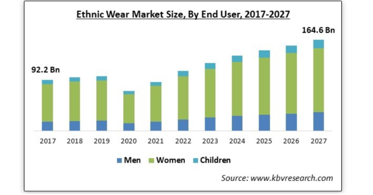 エスニックウェアの市場、2027年に1,646億7,000万ドル規模に到達見込み