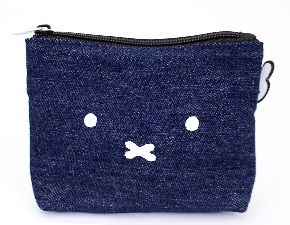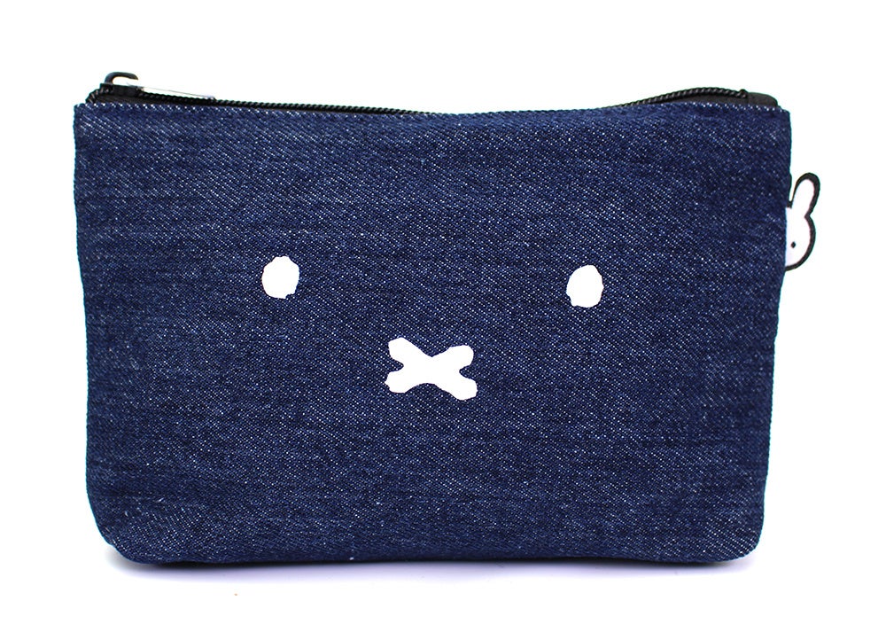 ・【ミッフィー】帆布ポーチM フェイスデニムブルー
