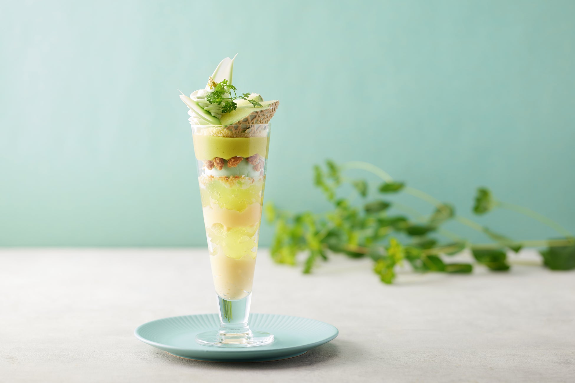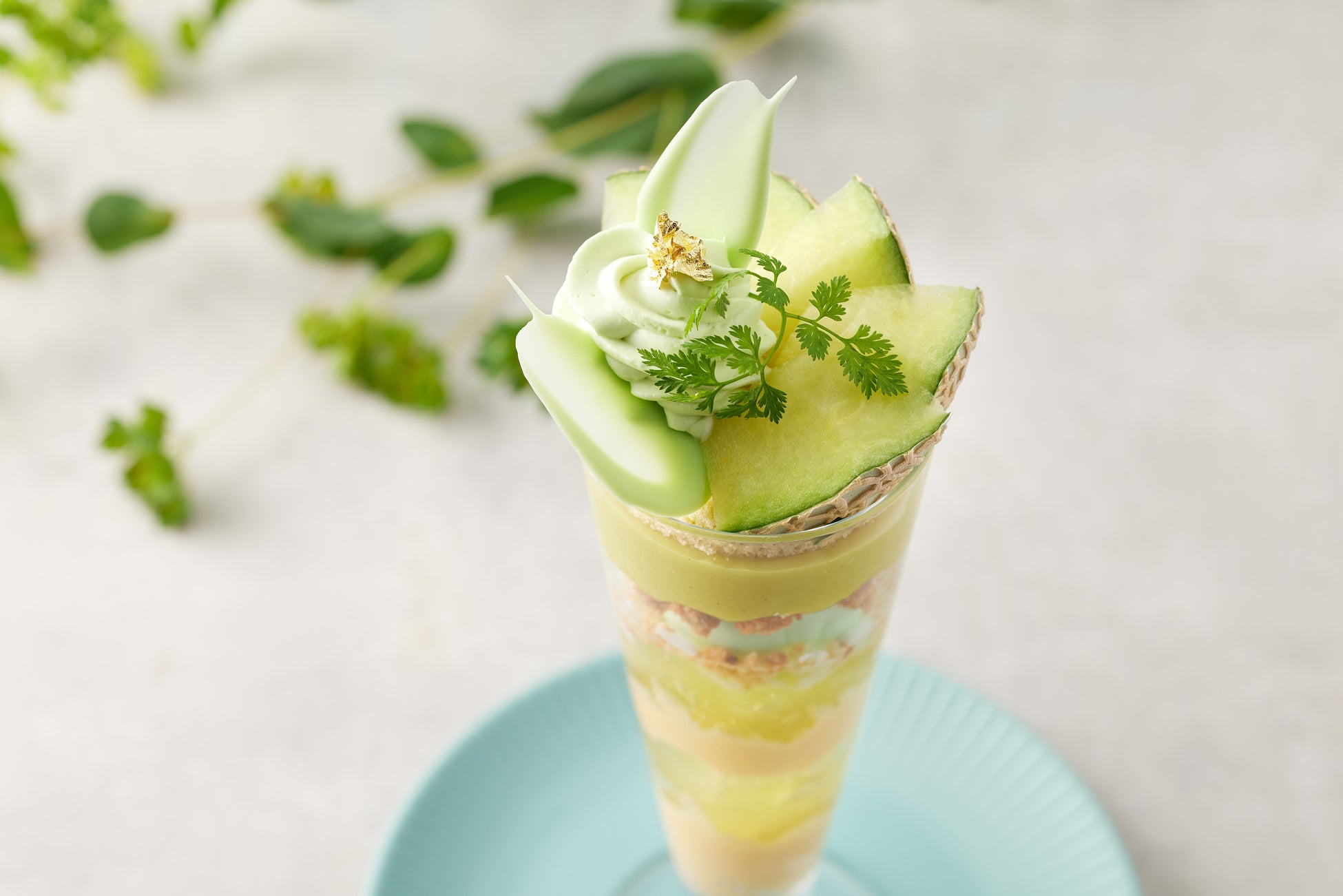 フルーツの王様“マスクメロン”を贅沢に使用、爽やかなグリーンが春の訪れを感じさせるご褒美パフェが新登場