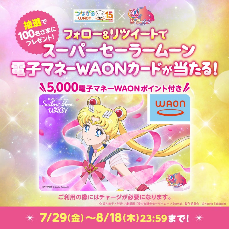 イオンの電子マネー「WAON」誕生15周年、30周年を迎える美少女戦士セーラームーンとコラボ