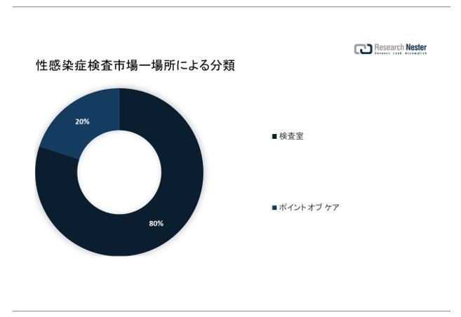 これらの場所に基づいて、研究所は性感染症 (STD) を評価するために世界中で最も一般的に使用される場所であるため、研究所セグメントは最高の収益を得る可能性があります。 予測した。 正しい結果を得るために適切な注意を払って検査室で行われる血液スクリーニングは、市場でのセグメントの成長を急上昇させると予測されています。 さらに、臨床検査は正確で信頼性が高く、その使用は広く普及し、人々の信頼も高まり、市場におけるこのセグメントの成長はさらに加速すると予想されます。 たとえば、2022 年 5 月、欧州委員会の承認を得て、Qiagen Inc. は、単純ヘルペス ウイルス 1 型 (HSV-1) DNA と単純ヘルペス ウイルス 2 型 (HSV-2) の決定と識別のための技術を開発します。NeuMoDxHSV 1/2 Quant Testをリリースしました。 その結果、これらの要因は、予測期間中にセグメントの成長のための多くの機会を生み出すと予想されます。