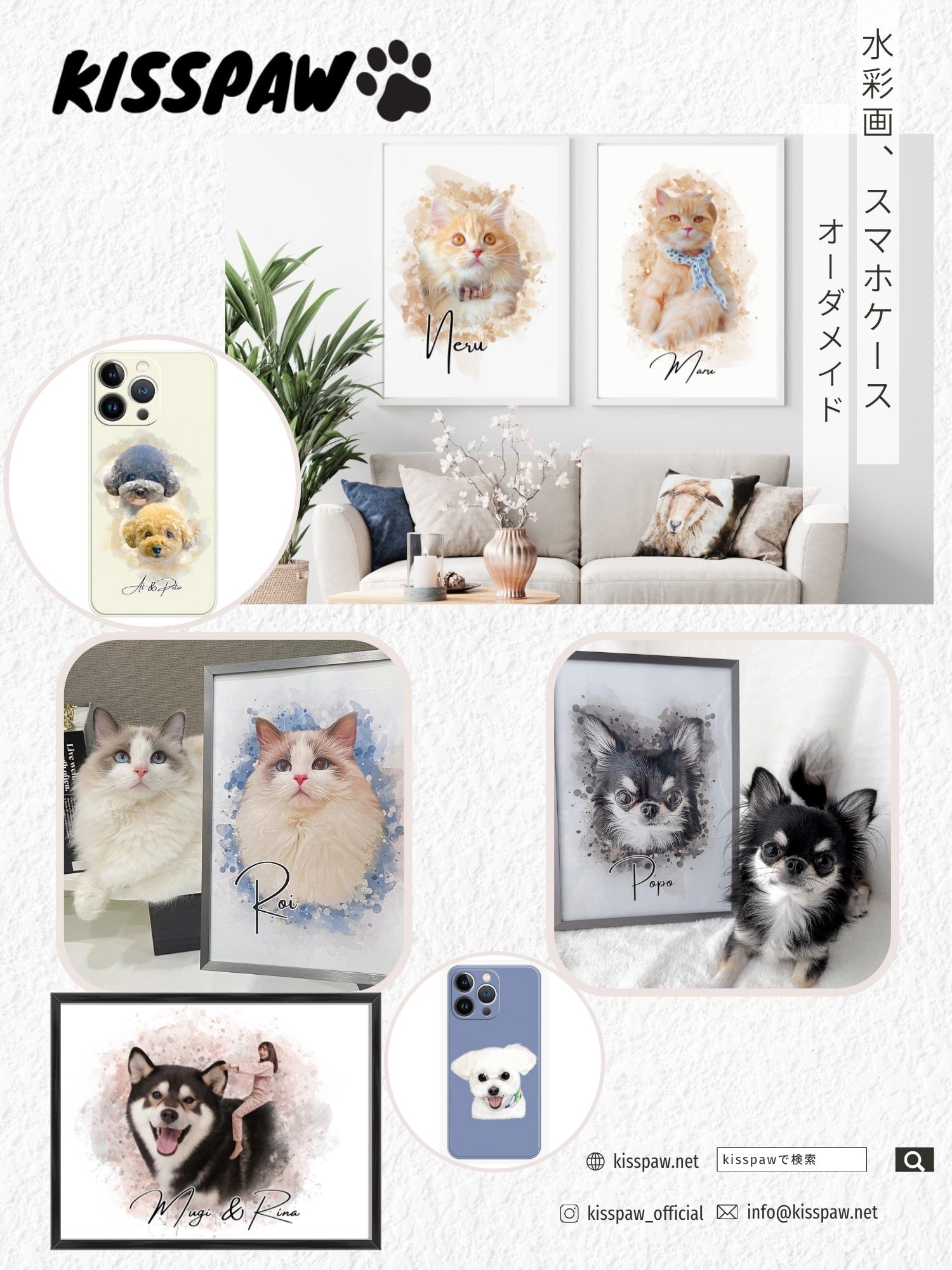ペットの個性を豊かな水彩画で表現する専門ショップです。また、水彩画や似顔絵を使用したスマホケースなどのオリジナルグッズのオーダーメイドも承っています。作家陣には海外での留学経験者や国際的なアート賞受賞者も在籍し、これまで2万匹の実績があります。