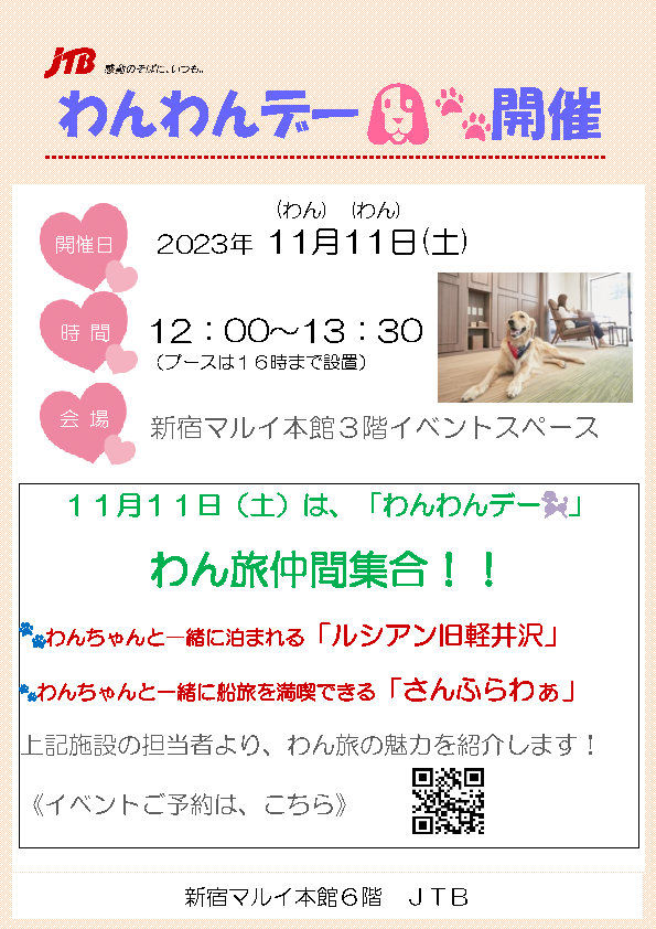 「JTB わんわんデー」 11月11日(土)12:00~13:30