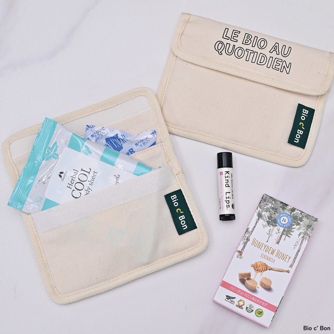 発売以来人気の「マルシェバッグ」を製造する過程ででる残反(はぎれ)を無駄なく利用しています。第一弾は「ビオセボン ポーチ」(3色)で、第二弾となります。