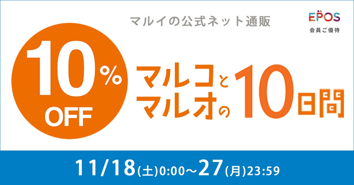 エポスカード利用で10%OFF!マルイのネット通販「マルイウェブチャネル」にて『マルコとマルオの10日間』開催!