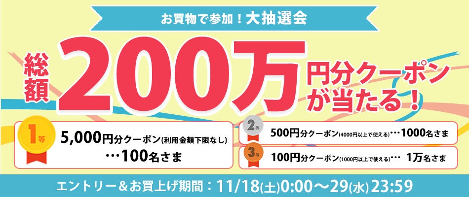 1等:5,000円分クーポン(すべての商品で使用可能)…100名