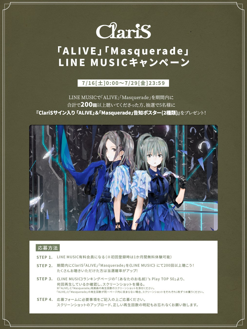 期間内にClariS「ALIVE」「Masquerade」を《LINE MUSIC》 にて200回以上聴こう!