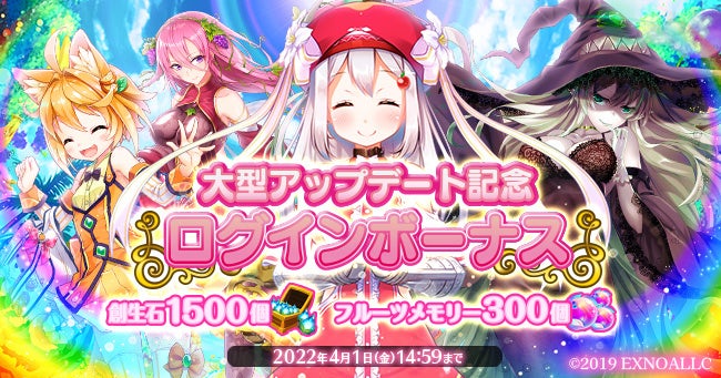 ▼大型アップデート記念 ログインボーナス「創生石×1500個 フルーツメモリー×300個」プレゼント!