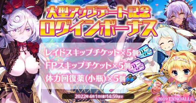 併せて本日より開始の「大型アップデート記念」ログインボーナスでも「体力回復薬(小瓶)」を毎日5個配布中!