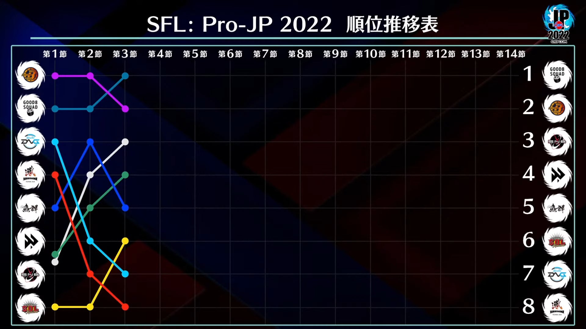 - 現在までの順位表、順位推移表