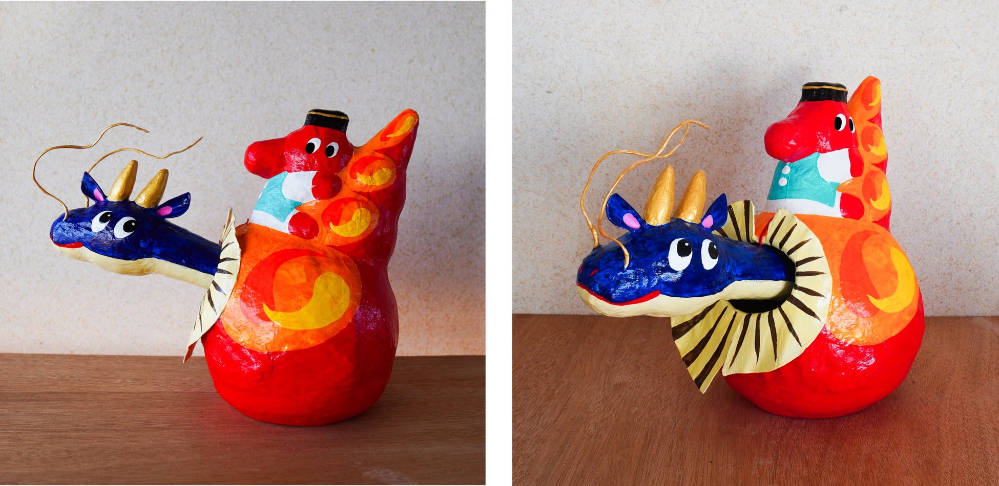 ・竜の絵は「竜がほら貝から飛び出る場面」をデザイン(遠州天狗屋/坂田吉祥デザイナー作)。