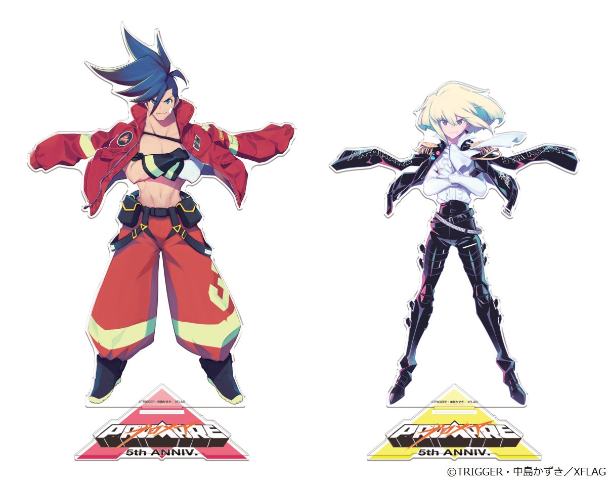 さらに、5周年記念イラストを使用したアクリルスタンドやTシャツのほか、原画イラストがデザインされたカードや、設定画缶バッチなども会場にて販売予定です。見て、聞いて、触れて、映画『プロメア』を浴びることのできる本展をぜひお楽しみください。