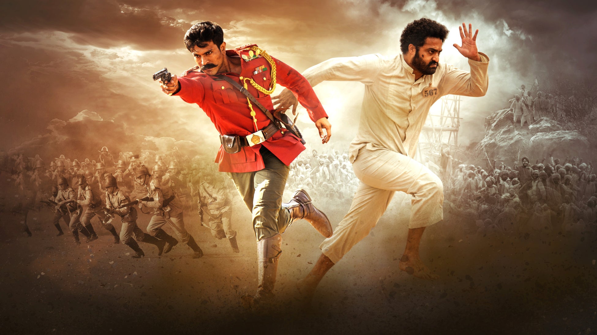 舞台は1920年、英国植民地時代のインド。英国軍にさらわれた幼い少女を救うため、立ち上がるビーム(NTR Jr.)。大義のため英国政府の警察となるラーマ(ラーム・チャラン)。