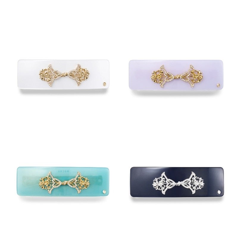 人気連作『四つの花:リリー』(1898年)のアートから花の表現を抽出し、誕生したヘアクリップは、アールヌーヴォーを彷彿とさせる、流れるようなアーチのデザインが印象的。ワニクリップ仕様で、サイドヘアアレンジやまとめ髪のアクセントとしてお楽しみいただけます。