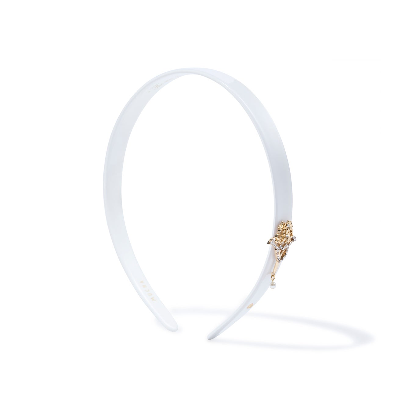 華やかなビジューブローチをあしらったエレガントなカチューシャは、シンプルながらも存在感のあるデザインでヘアスタイルを華やかに演出。内側にはミュシャのメッセージ「The aim of art is to