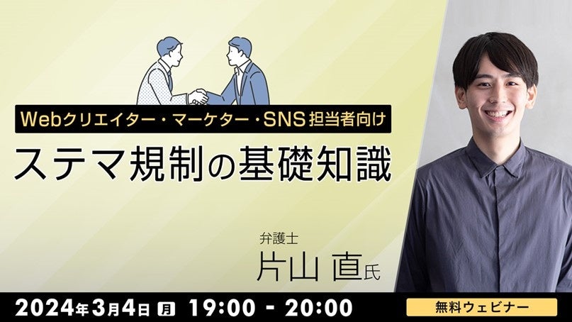 株式会社クリーク・アンド・リバー社(C&R社)は3月4日(月)、クリエイターやマーケター、ライター、SNS担当者の方を対象に、無料オンラインセミナー「Webクリエイター・マーケター・SNS担当者向け ステマ規制の基礎知識」を開催します。