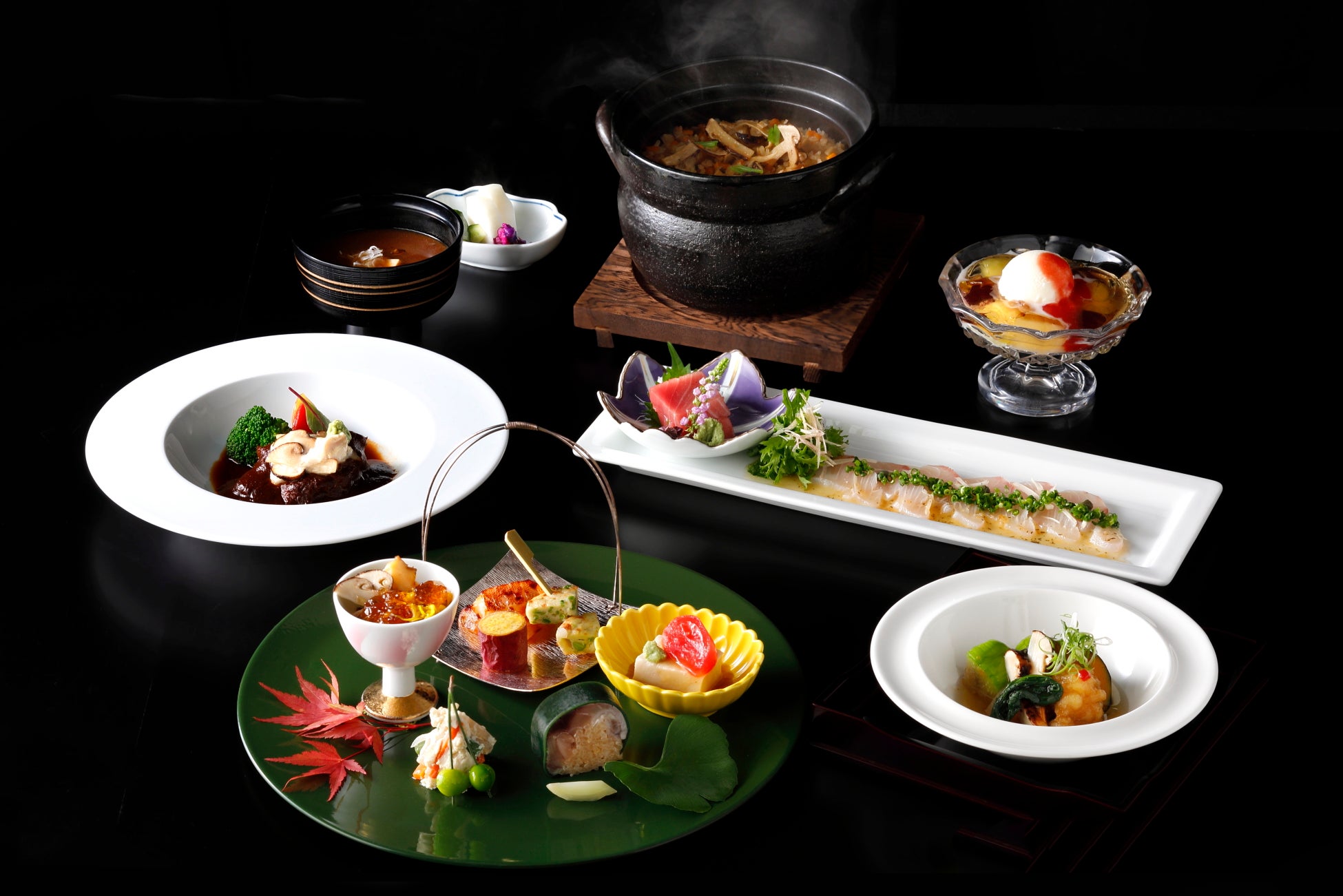 季節ごとに美味しい旬の食材と出会い、四季の移ろいを五感で感じることが出来るのが、日本の食が誇る魅力のひとつです。なかでも秋には、さつまいもや栗、秋刀魚にぶどうに山の幸、海の幸まで、人々の心を掴んでやまない食材がずらり。そんな多くの”秋の味覚”の顔ぶれの中で、圧倒的な存在感を放つのが「松茸」。日本料理「KATO'S DINING BAR」では、その響きを耳にするだけで食欲をそそられる、秋を代表する味覚をふんだんに使用したメニューを、会席と御膳の2スタイルで提供します。贅を尽くしたその味わいは、お祝いの席や記念日、自分へのご褒美など、どんなシーンも彩ります。