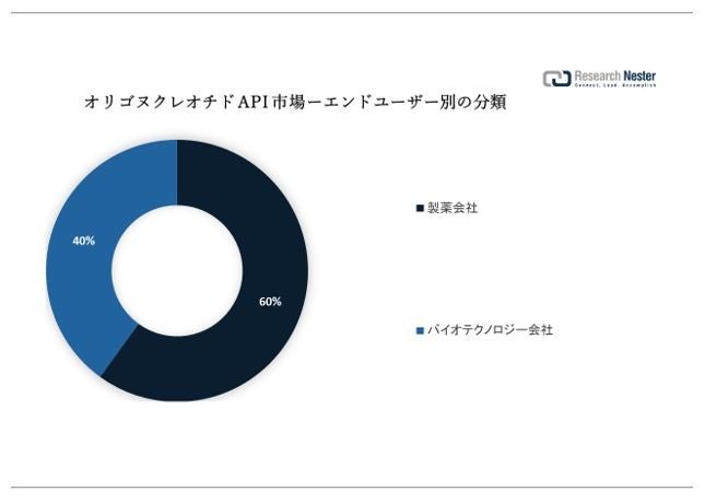エンドユーザーに基づいて、製薬会社セグメントは、予測された時間枠で最大の市場シェアを獲得すると推定されています。 このセグメントの成長は、医薬品の有効性を改善し、開発コストを削減するために製薬大手による革新的な技術の採用が増加したことに起因する可能性があります。たとえば、アンチセンス オリゴヌクレオチド、短鎖干渉 RNA、スプライス切り替えオリゴヌクレオチド、マイクロ RNA、免疫刺激性オリゴヌクレオチド、アプタマーなど、さまざまなオリゴヌクレオチドが製薬業界でますます人気を博しています。 疾患遺伝子またはそれによってコードされるメッセンジャー RNA (MRNA) を標的とする能力は、新しい治療の可能性を生み出しました。 治療用アンチセンス オリゴヌクレオチド (ASO) の長さは、18 から 30 塩基対 (BP) までさまざまです。