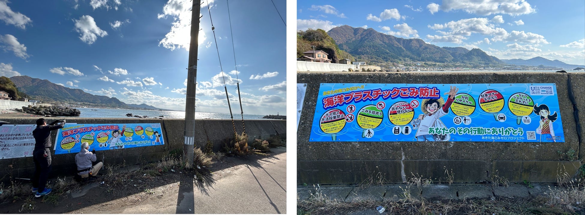 秋田県漁業協同組合様の協力のもと、昨年春(2024年5月~7月)に実施したアンケート調査により、釣り人のマナー、ごみ問題で気になる場所として挙げられた八森港内への設置となりました。