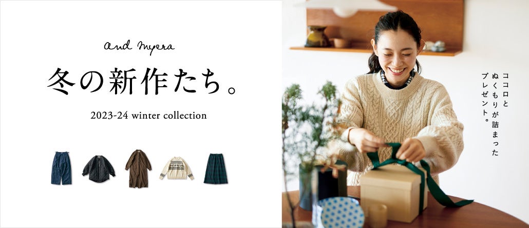 「丁寧で静かな暮らし」に似合う服がコンセプトのand myera[アンドマイラ]。着るだけで、なんだか素敵な一日が過ごせそうな服になるように、手間と愛情を込めて服作りをしています。私たちの作った服が、あなたにとって愛して止まないモノになりますように。
