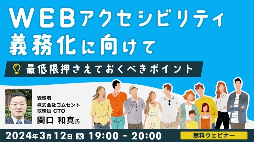 株式会社クリーク・アンド・リバー社(C&R社)は3月12日(火)、Webに関する業務に携わる方を対象に、無料のオンラインセミナー「Webアクセシビリティ義務化に向けて 最低限押さえておくべきポイント」を開催します。