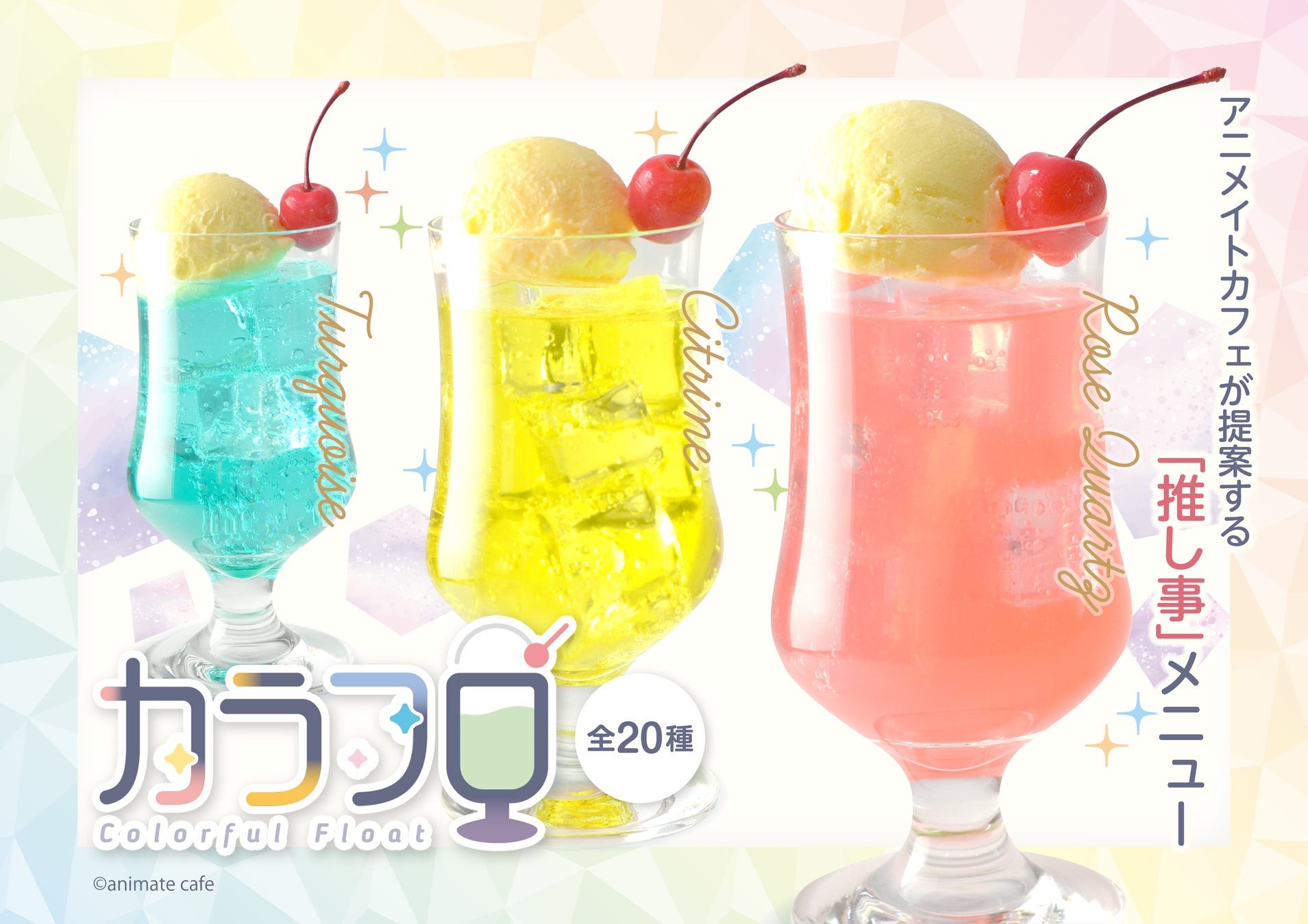 全20色から推しの色を選べるカラフルなフロート『カラフロ』がアニメイトカフェ池袋・池袋2号店で発売決定!