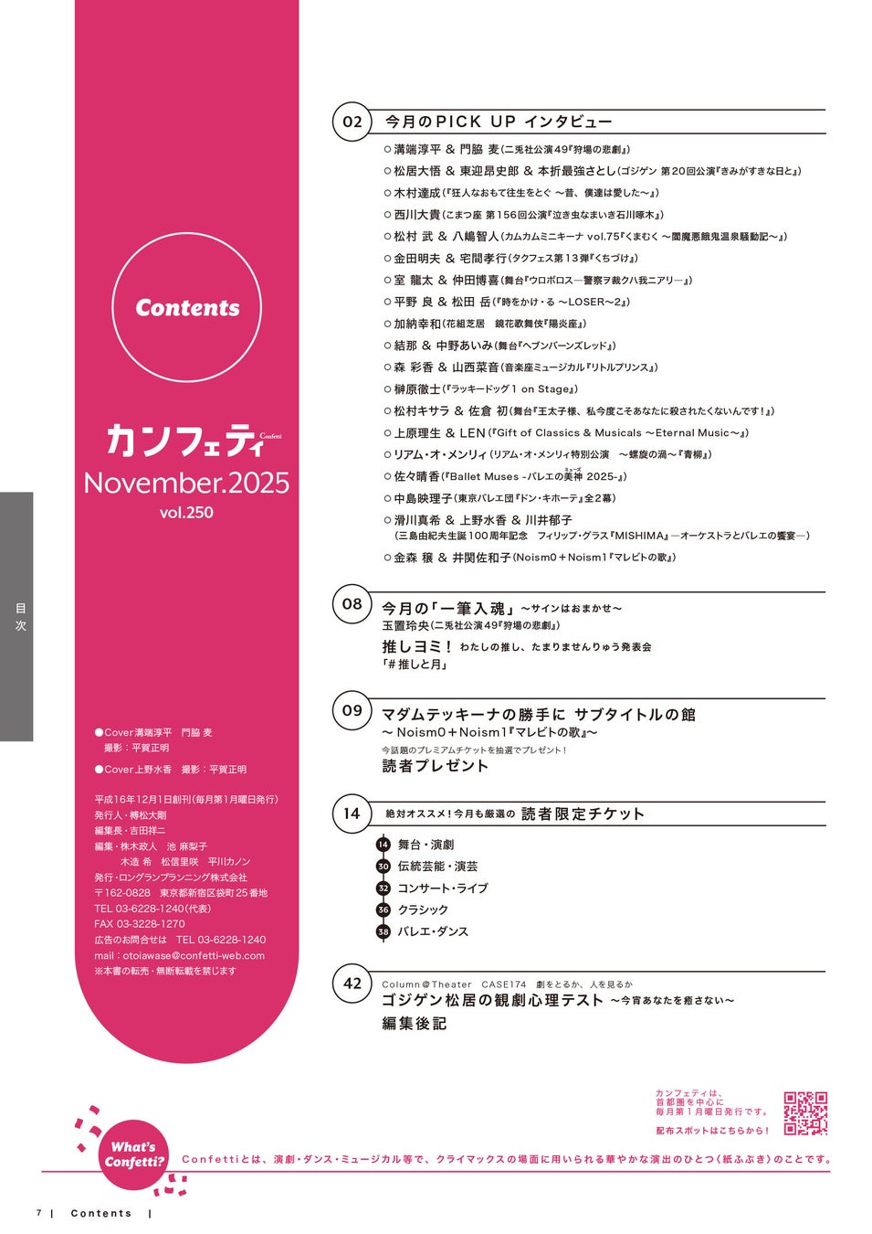ぜひお近くの劇場やお店、駅などで「カンフェティ」最新号をチェックしてください。