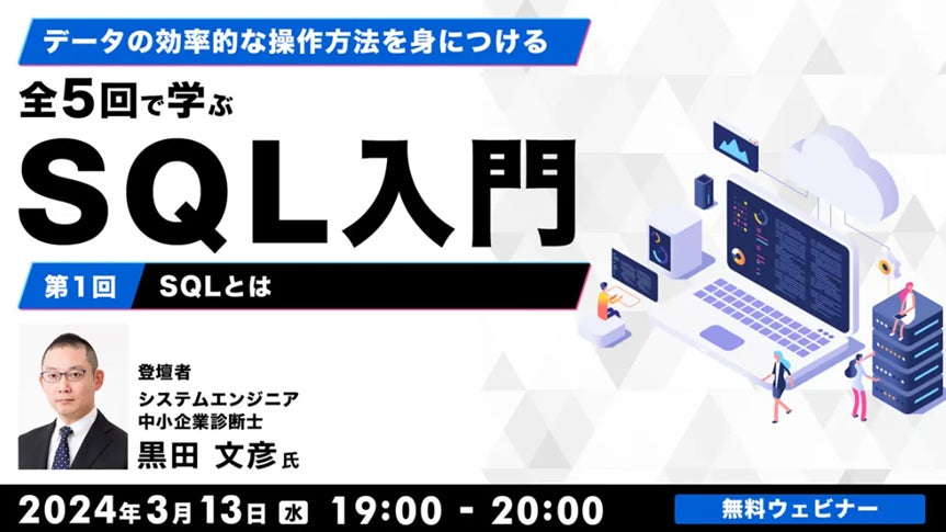 デジマ領域へのキャリアチェンジやオペレーション業務からデータ分析業務へのスキルアップに活かせる! 3/13(水)無料セミナー「全5回で学ぶSQL入門(1)~SQLとは~」