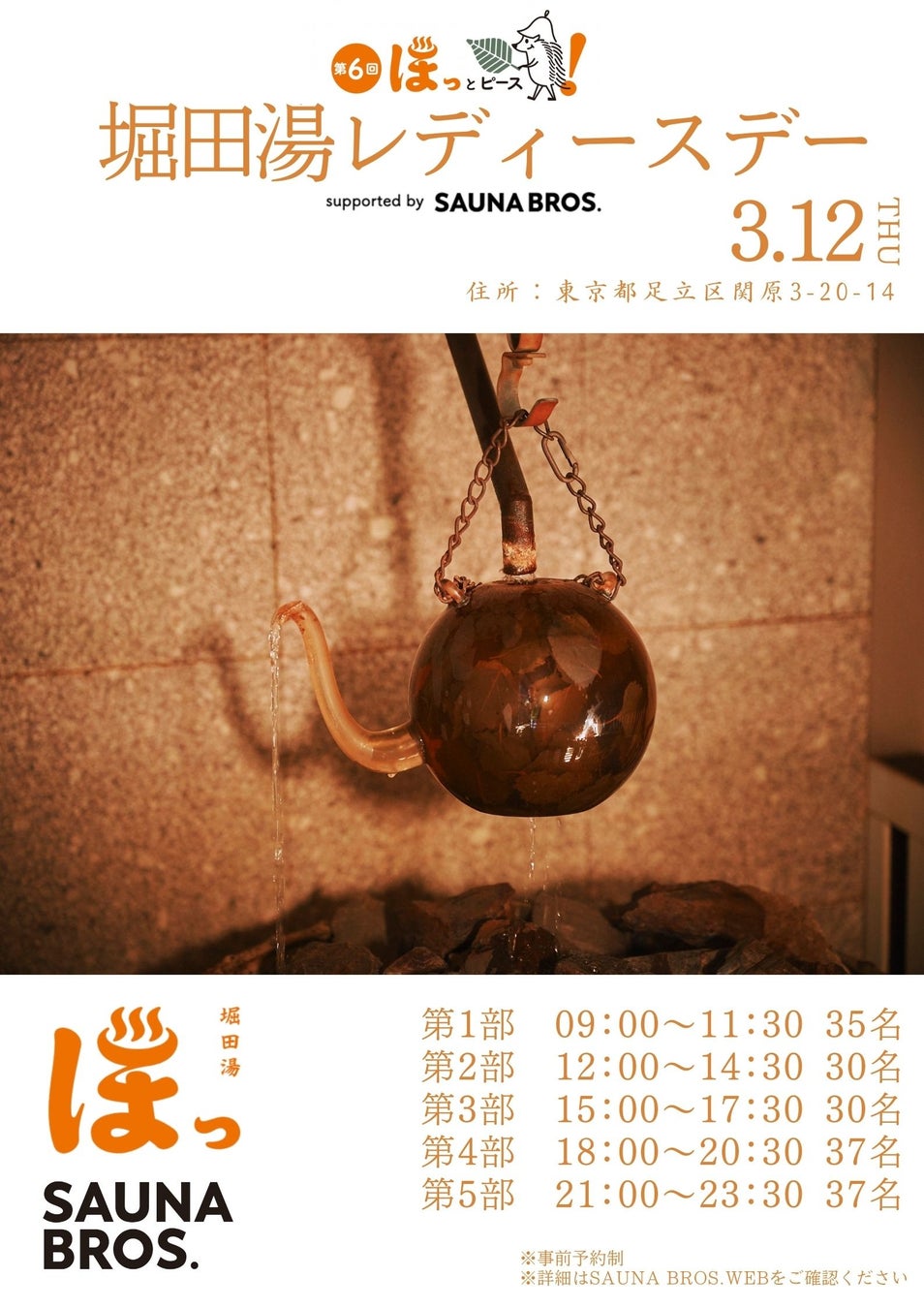 「ほっとピース! 第6回 堀田湯レディースデーsupported by SAUNA BROS.」3月12日(木)開催