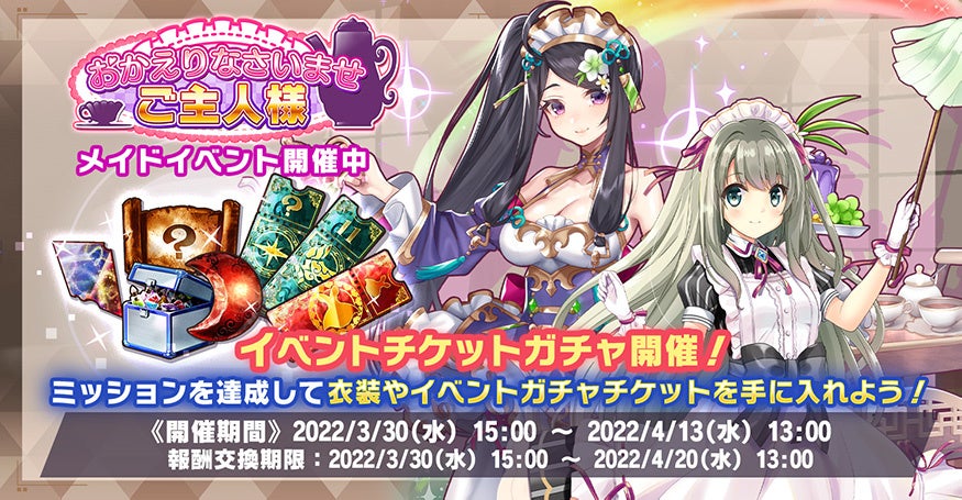 ・様々な条件のミッションを達成することで「メイド衣装チケット」や