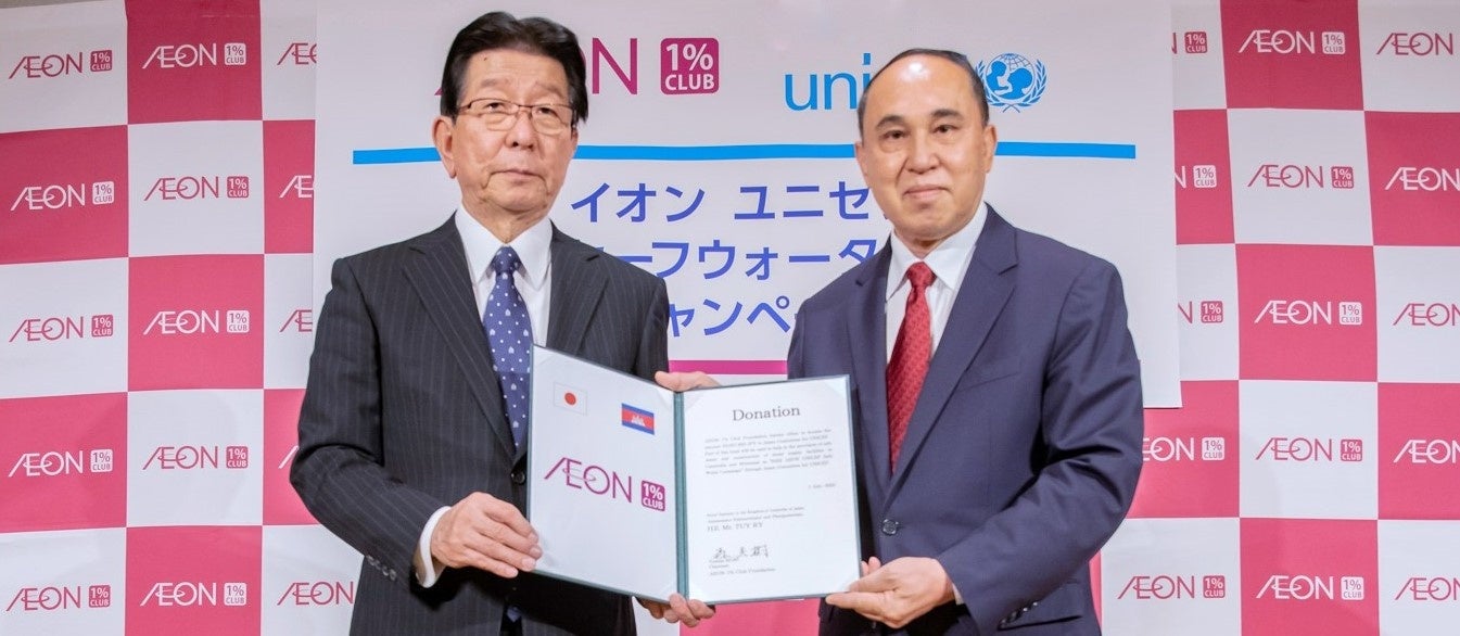 贈呈式では、駐日カンボジア王国トゥイ・リー大使にご臨席を賜り、日本ユニセフ協会より給水施設設置状況についてのご説明をいただきました。トゥイ・リー大使より、カンボジアの一部地域において安全な水を利用することができるようになりましたとの感謝のお言葉をいただきました。カンボジアやミャンマーでは、池や河川の不衛生な水や人体に悪影響を及ぼす恐れのある物質を含んだ地下水が生活用水として使われている地域があります。また、遠隔地への水汲みに時間をとられ、学校の授業に出席できない子どもたちがいるという状況を受け、こうした子どもたちを支援するため、イオンワンパーセントクラブでは、2010年より本キャンペーンを継続しています。このキャンペーンによりこれまでに60万人を超える人々が、安全な水を使えるようになりました。イオンワンパーセントクラブは、これからも同事業を通じ、次代を担う子どもたちの健全な育成に貢献してまいります。