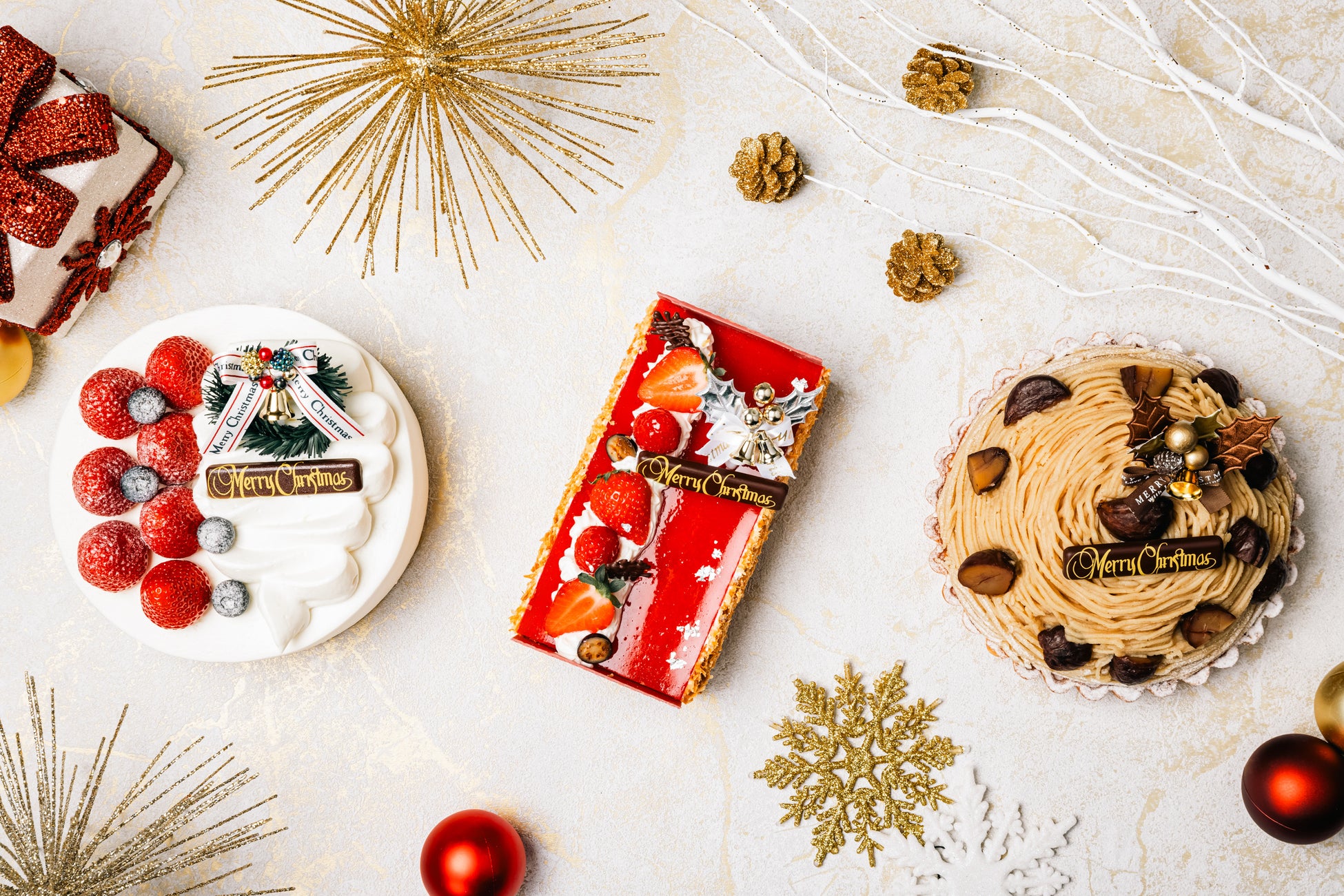 クリスマスショートケーキ」は、きめ細やかでしっとりとしたスポンジ生地に、パティシエが配合にこだわった2種類の生クリームと香り高い国産苺を敷き詰めた、洗練された上品な味わいのショートケーキです。この他にもピスタチオクリームを包んだ「ガトーショコラ」やマロンクリームが香ばしい「タルトモンブラン」など、全5種類が揃います。