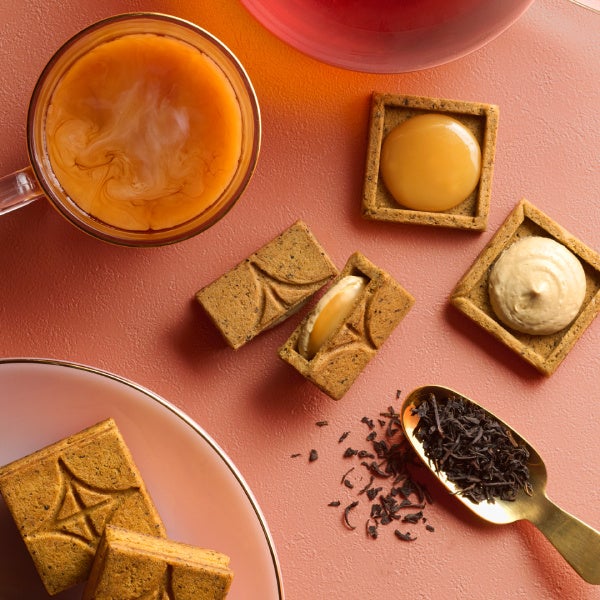 〈PRESS BUTTER SAND〉全国販売前に、先駆けて先行販売。和紅茶とベルガモットオイルを練り込んだアールグレイクッキーは、噛むたびにふわっと広がる華やかな香り。そこに、濃厚でコク深い練乳バターキャラメルがとろけ、まるでミルクティーのようなやさしい甘さが広がります。さらに、バタークリームにも和紅茶とベルガモットオイルを加え、紅茶の芳醇な風味とバターの濃厚なコクが重なり合う一口に。寒い季節に寄り添う癒しの味わい。華やかな香りで贅沢なひと時を感じられるバターサンドは、冬のギフトにも最適です。香り高く、奥行きのある味わいをご褒美タイムにぜひじっくりご堪能ください。