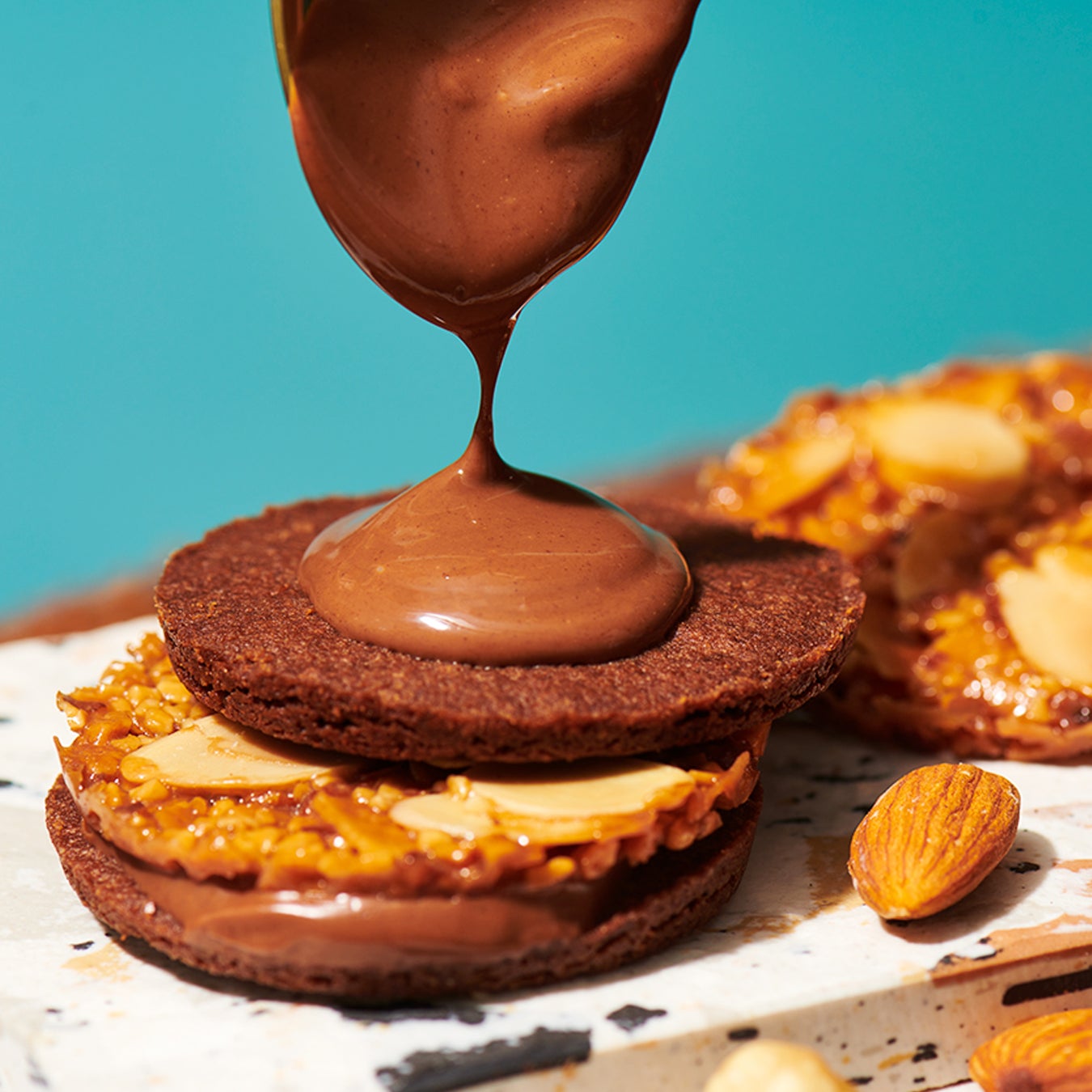 香ばしくキャラメリゼしたアーモンドチュイル、濃厚なコクのジャンドゥーヤチョコレート、食べた瞬間にほどけるザクホロ食感のシュトロイゼルの3層で出来たあたらしいフロランタンです。