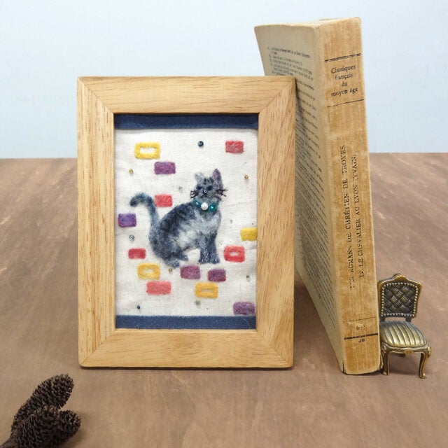 ⑧羊毛刺しゅうの額絵「おすましネコ」 税込4,400円