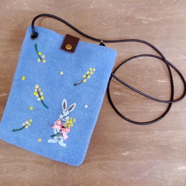③ウサギとミモザ柄のフェルトのミニショルダー 税込11,000円