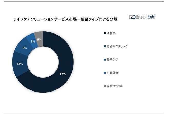 世界のライフケア ソリューション サービス市場は、需要と供給について、製品タイプ別に患者モニタリング、母子ケア、消耗品、心臓診断、麻酔/呼吸器に分割および分析されています。これらのセグメントの中で、消耗品セグメントは2035年までに大きなシェアを獲得すると予想されています。消耗品セグメントは、研究室、病院、診療所などの医療施設での大量の使用に裏打ちされた、患者と医療提供者の両方の衛生と安全に対する意識の高まりを背景に成長すると予測されています。これらの消耗品の例には、マスク、ガウン、チューブ、針、注射器、接着剤、カテーテル、手袋などが含まれます。病院の最新の規則と規制により、医療用消耗品の利用が大幅に急増しています。したがって、そのような要件は、予測期間中にセグメントの成長を促進すると予想されます。