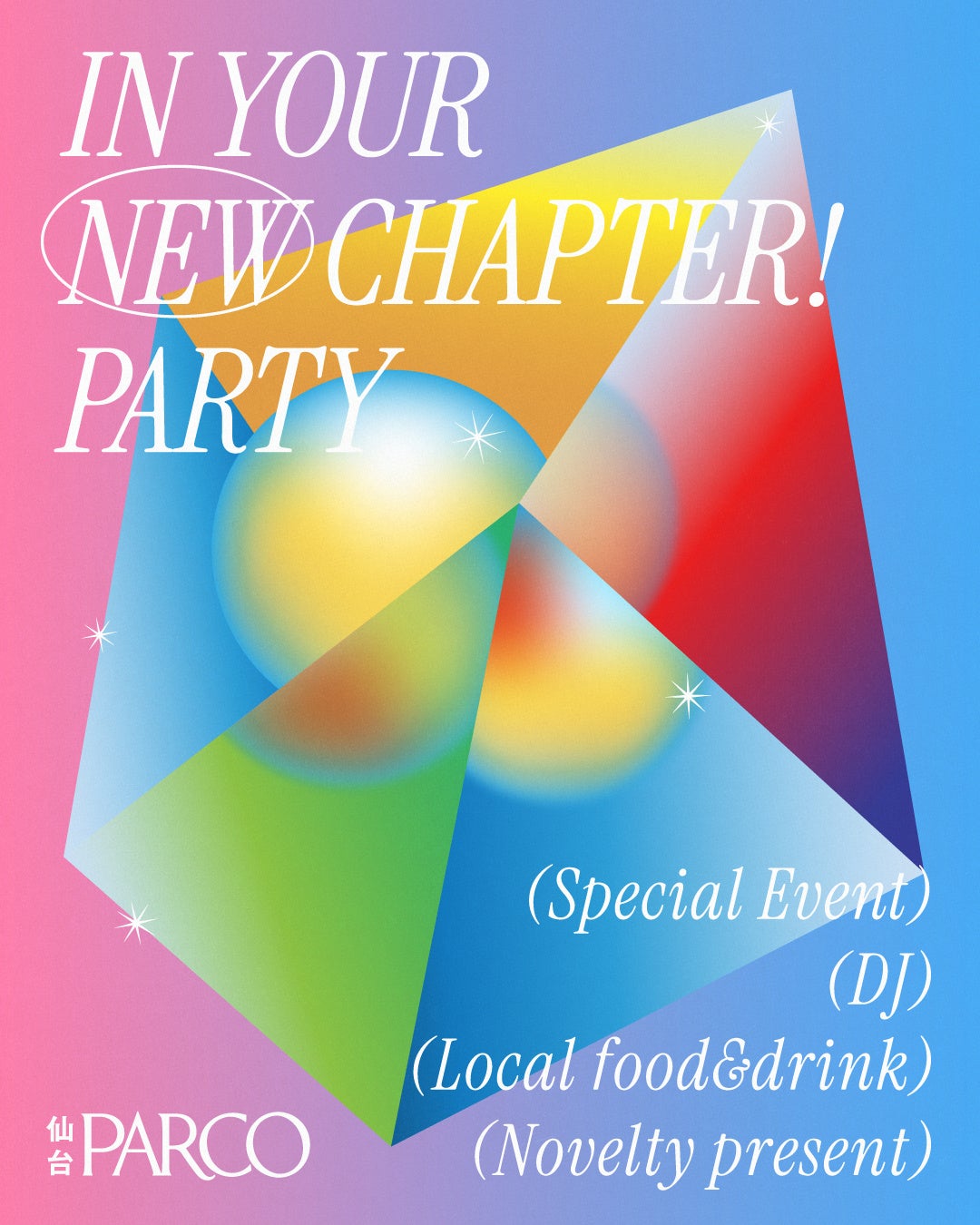 仙台PARCOは、5/17(土) 13:00~20:00に、2025年2月~5月にかけて実施してまいりました開業来 最大規模のリニューアルによる”新生”仙台PARCOの新たな門出をお祝いするパーティー「In your new chapter! party」を開催します。