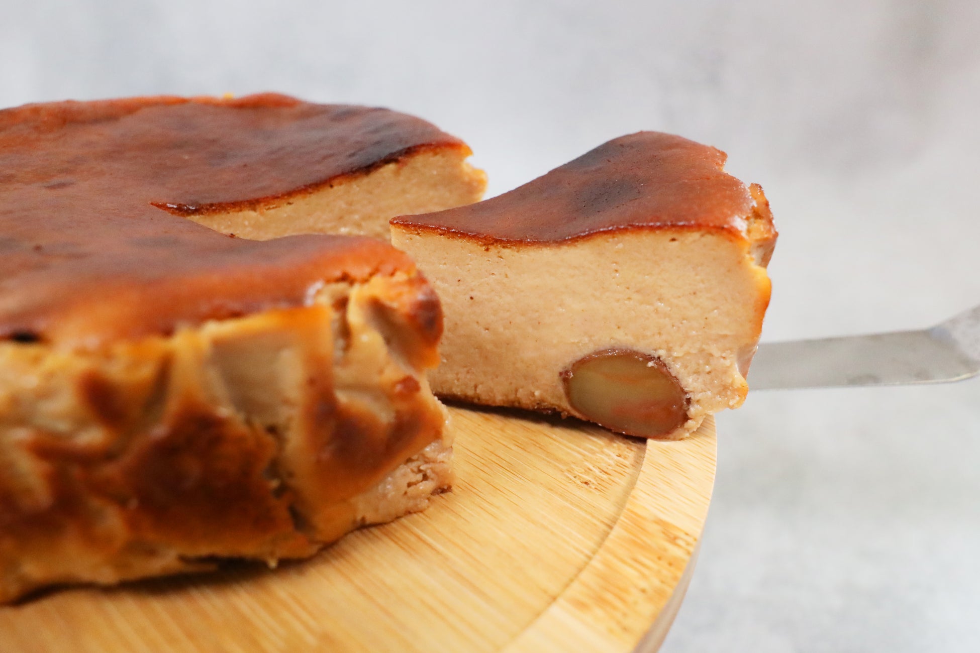 希少価値の高いジャージー生クリームに自家製キャラメルを合わせ、国産の渋皮栗甘露煮を贅沢に並べて香ばしく焼き上げたバスクチーズケーキ。キャラメルはしっかり焦がしてビターに仕上げ、生地には洋栗のねっとりとした甘さをプラス。繊細で自然な国産栗の甘さを最大限感じられるよう、こっくりとした味わいに仕上げた秋らしいフレーバーです。