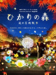 夜間限定の光のアート作品が、ROKKO森の音ミュージアムと六甲高山植物園を幻想的に彩ります。また、会場に設置された作品が光に照らし出され、昼間とは違った表情をお楽しみいただけます。10月中旬~11月中旬には、ライトアップされた木々の紅葉もお楽しみいただけます。