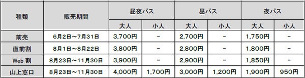 【料金】上記、夜パスまたは昼夜パスのとおり