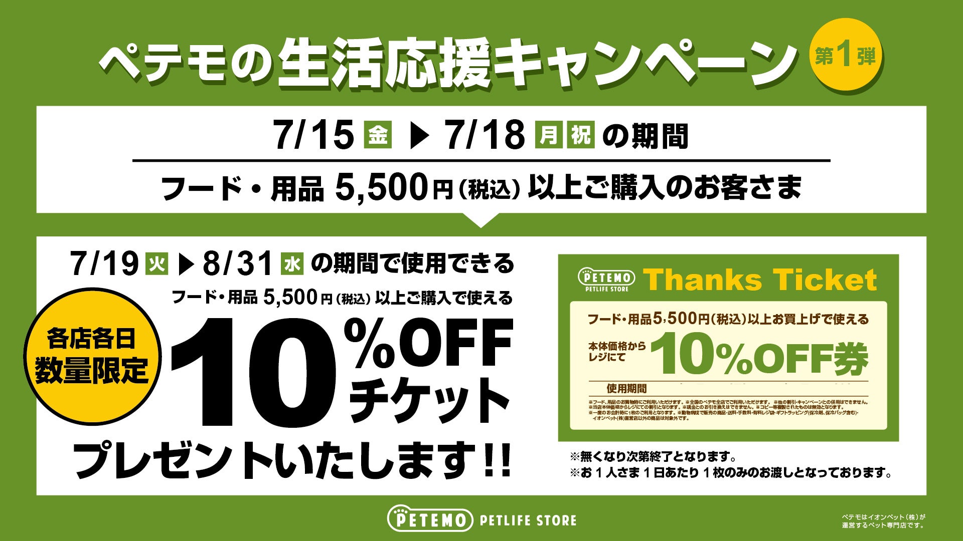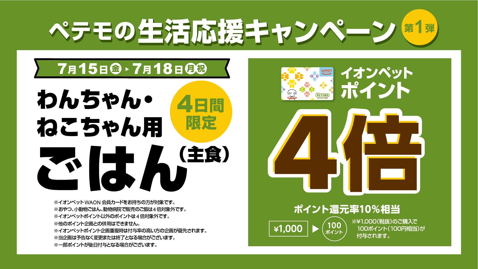 7月15日(金)~7月18日(月)の期間中、「ペテモの生活応援キャンペーン 第1弾」を実施