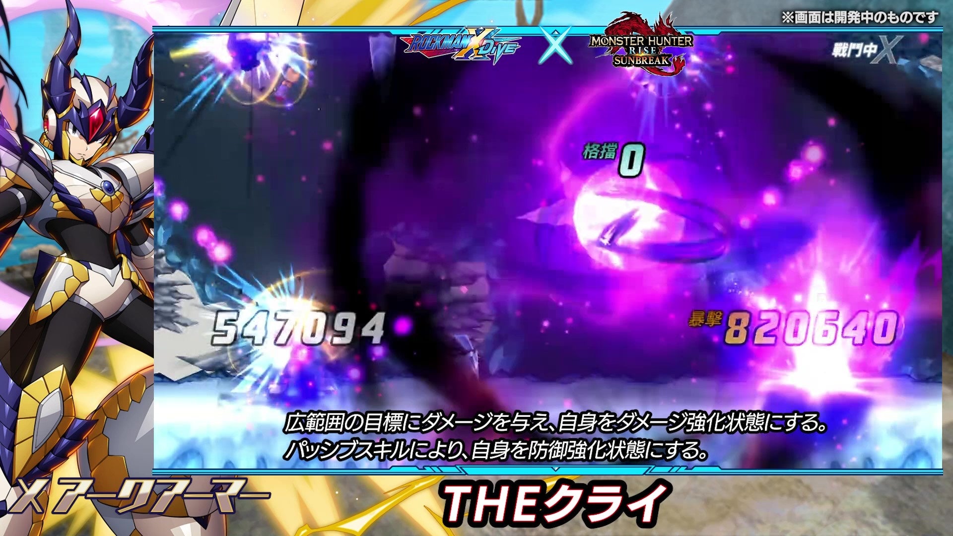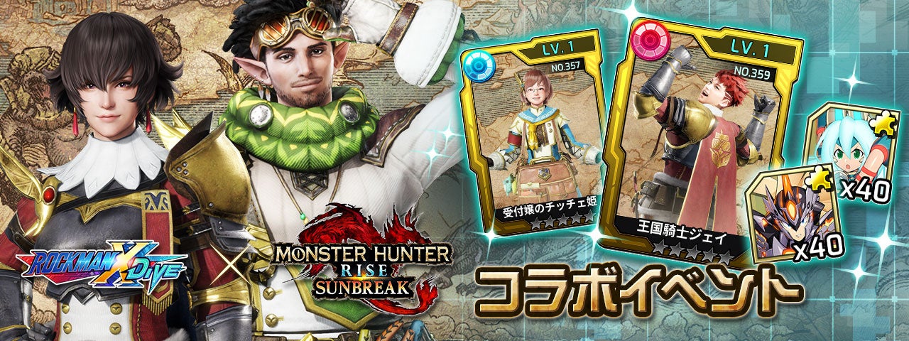 iOS/Android用ゲームアプリ『ロックマンX DiVE』では、本日9月28日(水)より『モンスターハンターライズ:サンブレイク』とのコラボイベントを開催。コラボキャラ「X アークアーマー」が登場する「MONSTER HUNTER RISE:SUNBREAK」カプセルや、コラボイベントステージ「狩れ!爵銀宿る爆炎の拳」などが配信開始!