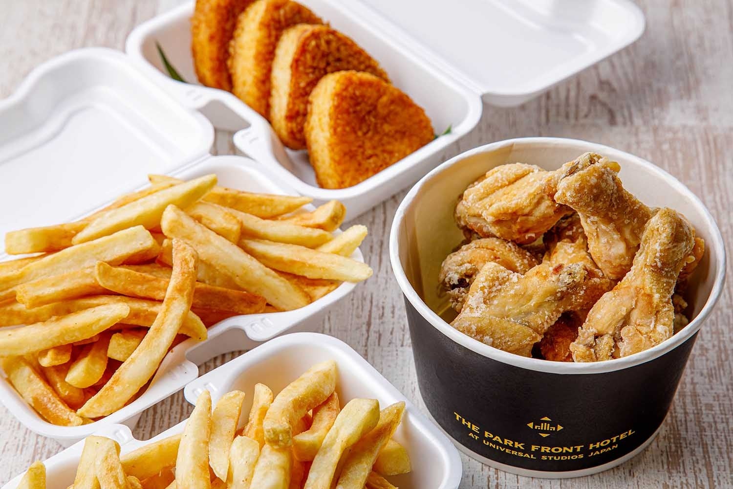 さらに特典として、ホテルブッフェダイニング「アーカラ」特製のチキンボックスとスパークリングワインをご提供いたします。また、お部屋はパークの景色を一望できる「パークビュールーム」をご用意いたしますので、パークの夜景を見ながらお部屋でゆっくり寛ぎたい方にもぴったりのプランです。